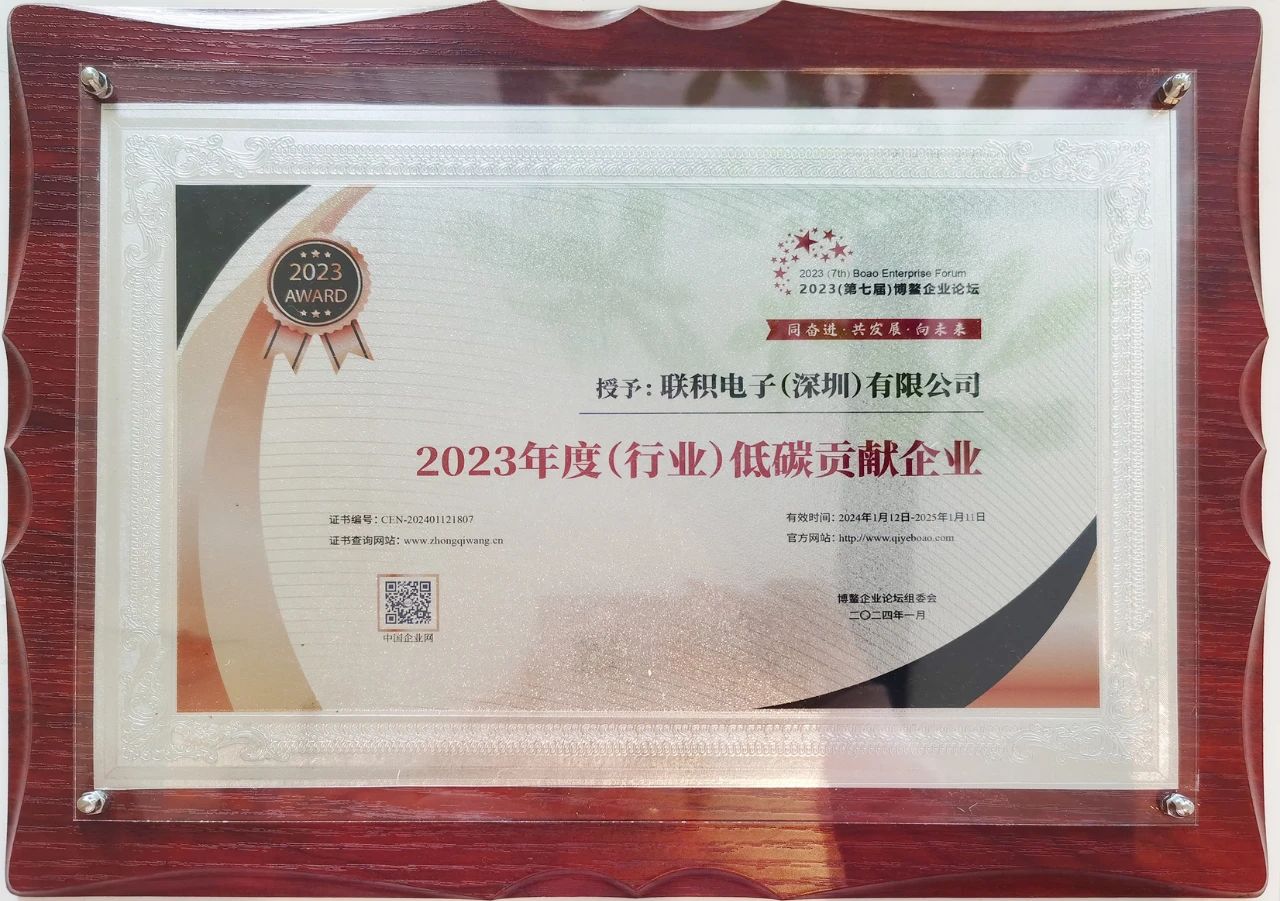 联积电子受邀参加本次会议,并荣获“2023年度(行业)低碳贡献企业”奖项。